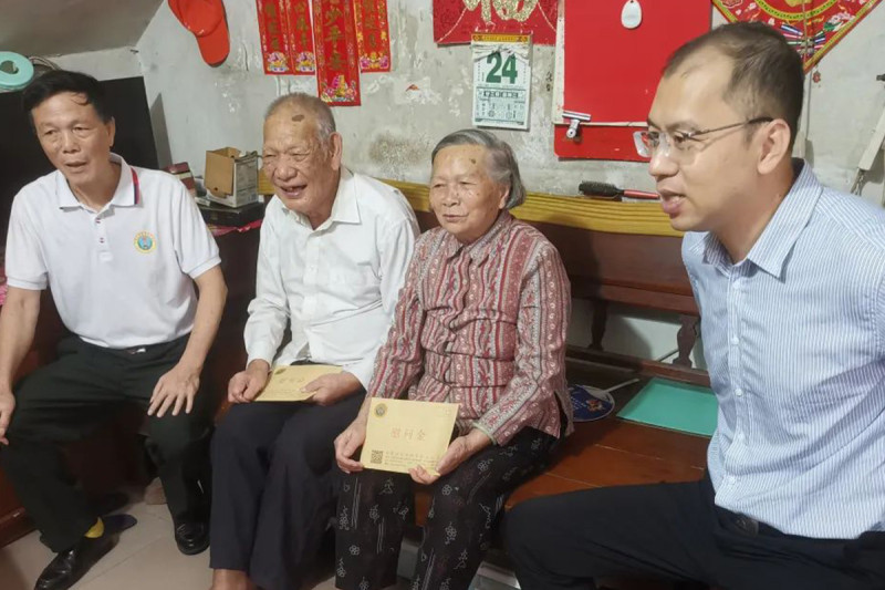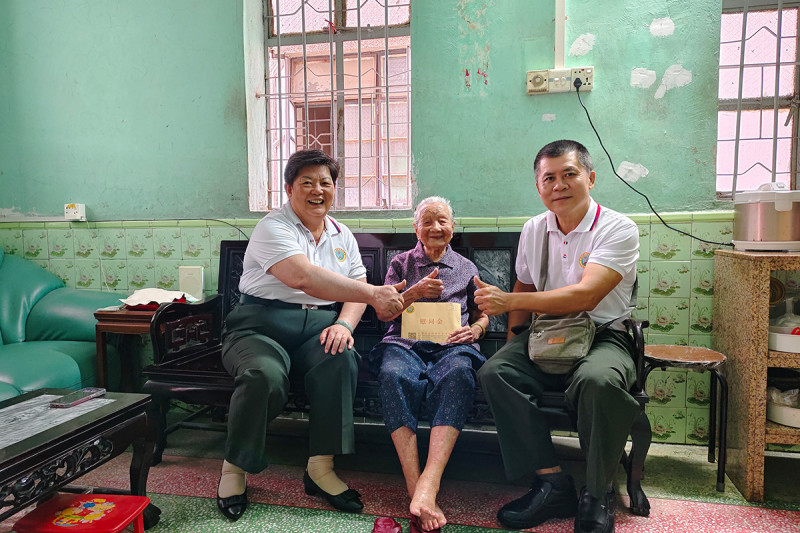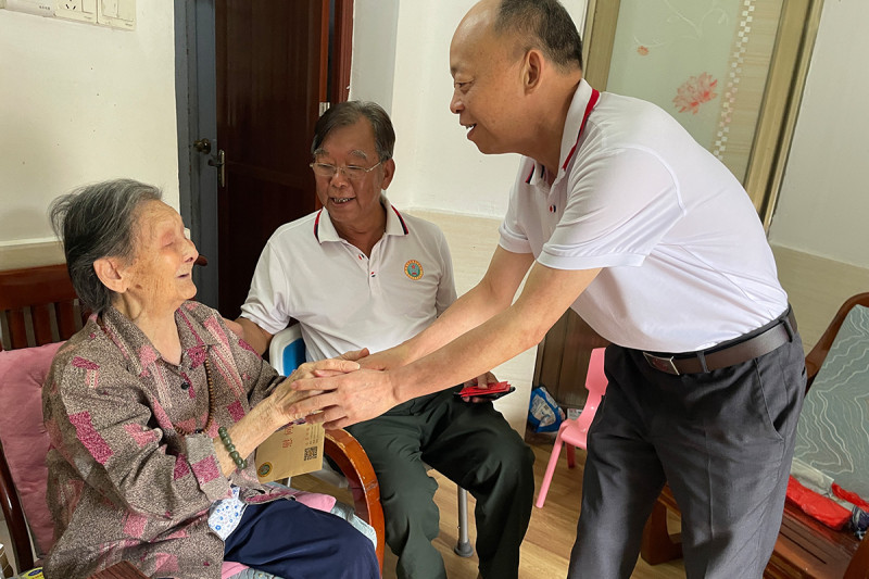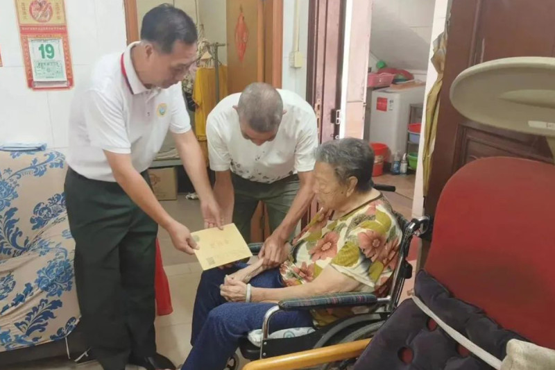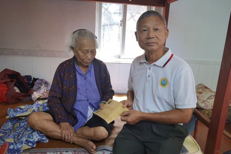 在虎门探望万建芬烈士母亲时,老人家年纪大了,腿脚已经不利索了,但还是坐在轮椅上等待慰问人员的到来,万烈士的弟弟代替老人家说“很感谢爱促会每年如期的到来,老人家虽然不怎么会讲话,但是爱促会对她好,她心里面很清楚”。