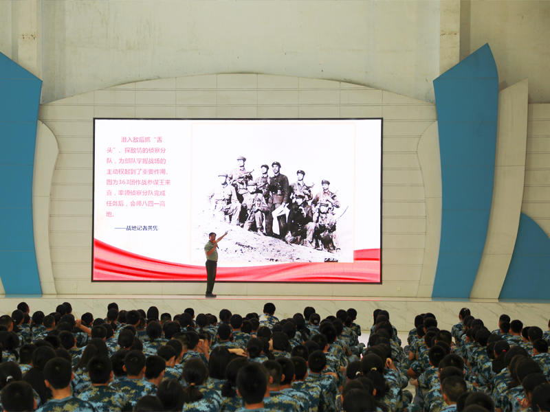 当天下午,在基地的大礼堂正接受综合实践教育的学生穿着整齐的训练服席地而坐,他们认真倾听来自东莞市爱国拥军促进会老兵宣讲团代表陈海良的激情讲述。陈海良是一名参战老兵,1979年参加过对越自卫还击战,1980-1981年参加法卡山收复,他围绕“身边的英雄”―东莞老兵的战斗故事进行了分享。由于他所讲的都是自己在战场上的亲身经历以及东莞战友们的战斗故事,讲起来激情洋溢,仿佛让学生们亲临其境,他还现场展示了当年战场上珍贵的老照片和作战地图,图文并茂地重现了当年的那一段烽火岁月。他分别讲述了莫耀芬、麦伦基等几位一等功臣的感人故事,讲到动情精彩处,学生们都报以热烈的掌声。