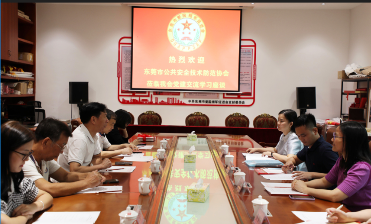 2022年6月10日上午,东莞市公共安全技术防范协会党支部书记李超华,秘书长郑国慧,党务专职联络员李 阳,会员部主任黄倩欣等一行4人来到东莞市爱国拥军促进会,受到了党支部书记、副会长兼秘书长卢普润,以及监事陈柱安等人的热烈欢迎!