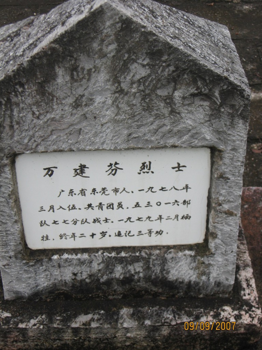 万建芬,东莞虎门人,1978年2月入伍,中国人民解放军某部121师363团4连炮排11班战士。1979年对越自卫还击战中,英勇牺牲,荣立三等功。