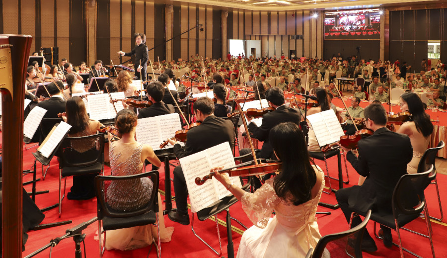 活动现场,珠影乐团的艺术家们以精湛的技艺奏响了老兵们熟悉的音乐,《红旗颂》《红色娘子军》《唱支山歌给党听》《我爱你中国》《我的祖国》等红色经典音乐作品精彩上演。这些优美的音乐歌颂了中国共产党成立100年来所取得的辉煌成就,进一步坚定了东莞退役军人“听党话、感党恩、跟党走”的信念。