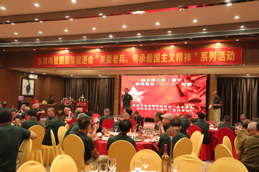 2021年8月1日,莞籍(79 •2)二团老兵服务工作小组,在厚街富盈酒店翠厅举行 “关爱老兵,传承爱国主义精神”系列活动“忆往昔风华正茂、保边疆筚路蓝缕”的主题活动,隆重庆祝中国人民解放军建军94周年。东莞市爱国拥军促进会常务副会长易志兵、副会长兼秘书长卢普润、副会长兼莞籍(79•2)老兵服务工作组组长李扬辉和莞籍(79 •2)二团老兵100多人参加活动。
