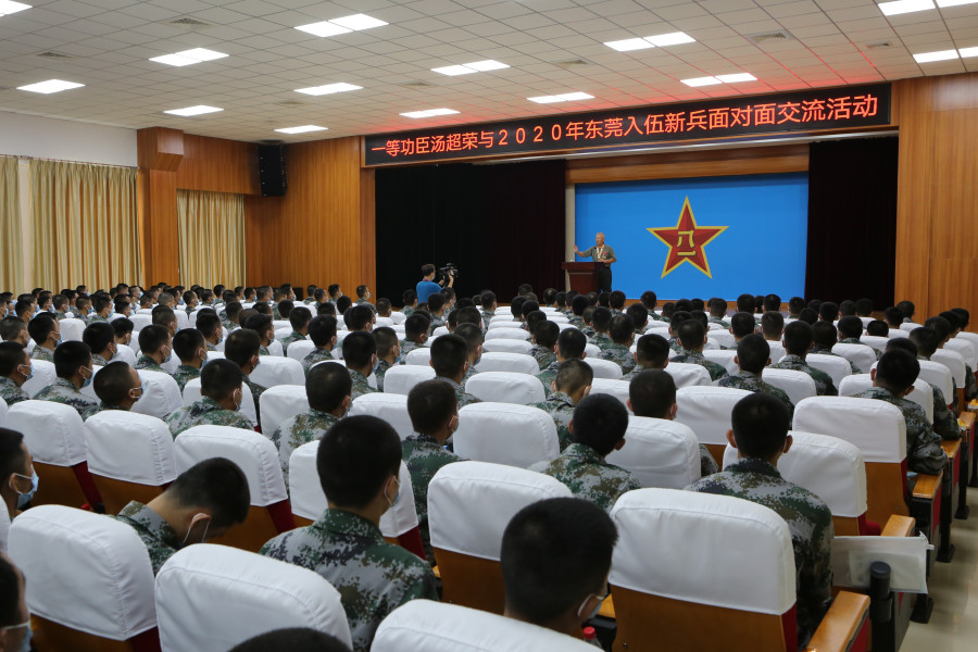 从2020年7月开始,到今年的5月,汤超荣先后去到步步高小学、松山湖中心小学等8所学校为孩子们讲自己的战斗故事,给2020年东莞入伍的新兵和老部队新兵讲述军人肩负的重任,为全市退役军人服务中心培训班的学员讲述退伍不不褪色的东莞老兵风采。21场演讲,17000多名学生、党员听课,虽然有点累,但汤超荣说,我愿意做一个红色基因基因的传承人,我喜欢给孩子们讲战斗故事,在孩子们心里从小就播种保卫国家的责任,这是我作为一个老兵、一个共产党员的责任。
