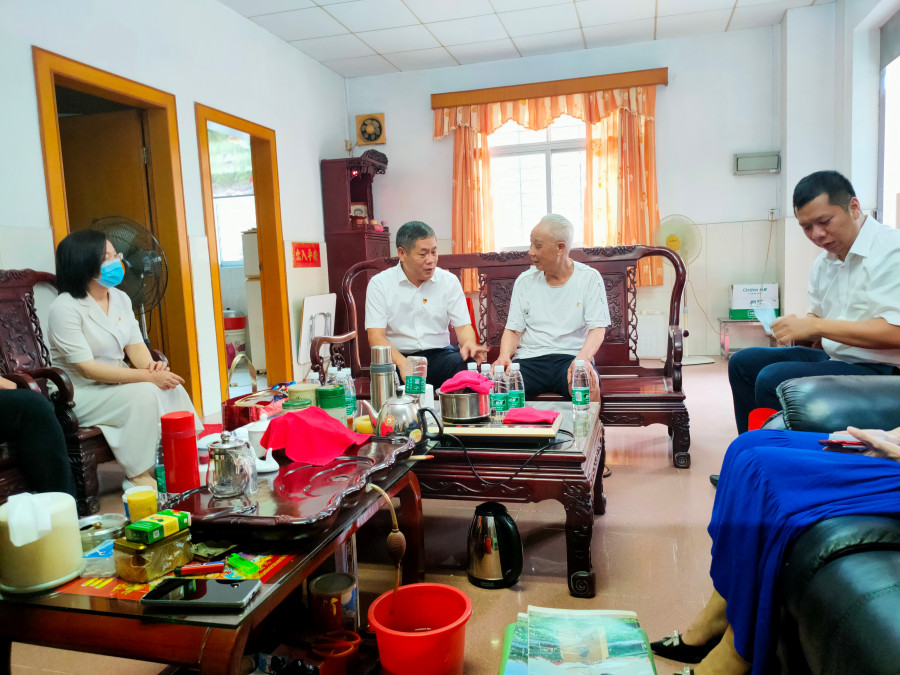 叶孔新等一行来到长安厦岗社区麦洪太家中,据了解,烈士家属麦洪太今年87岁,其中大儿子麦柏根1978年入伍,1979年在战争中英勇牺牲。叶孔新关切询问老人的身体状况、家庭生活情况,为老人送上慰问金,感谢老人家培养出优秀的人民子弟兵,感谢其家人为保家卫国所做出的贡献。叶孔新一再叮嘱他们要保重身体,并要求相关部门和社区要多关心老人的起居生活,帮助他们解决实际困难。麦洪太表示,感谢党和政府给予军烈属的关怀和厚爱,并一如既往地支持我们做好各项拥军工作。