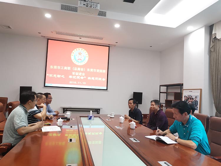 为深入开展“不忘初心、牢记使命”主题教育,11月13日上午,东莞市工商联(总商会) 与东莞市爱国拥军促进会共同举办“不忘初心 牢记使命 ”共建交流会。广东省工商联副主席、东莞市工商联主席、东莞市爱国拥军促进会会长莫浩棠,东莞市委统战部副部长、工商联党组书记陈国良,东莞市委统战部原副部长、市工商联原党组书记梁应昌,东莞市爱国拥军促进会常务副会长易志兵、副会长兼秘书长卢普润,东莞市民政局原副局长黄容开、东莞市工商联机关党支部专职副书记叶柱波等参加此次交流会。