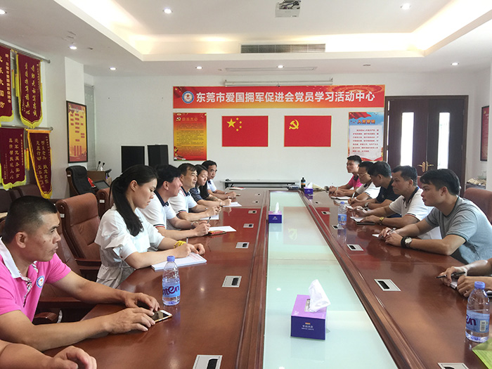五、6月6日,卢普润一行来到东莞市金华印刷有限公司,拜访该公司老板、参战老兵殷锦华,感谢他热心支持和参与我会开展的退役军人参与社会治理创新活动。