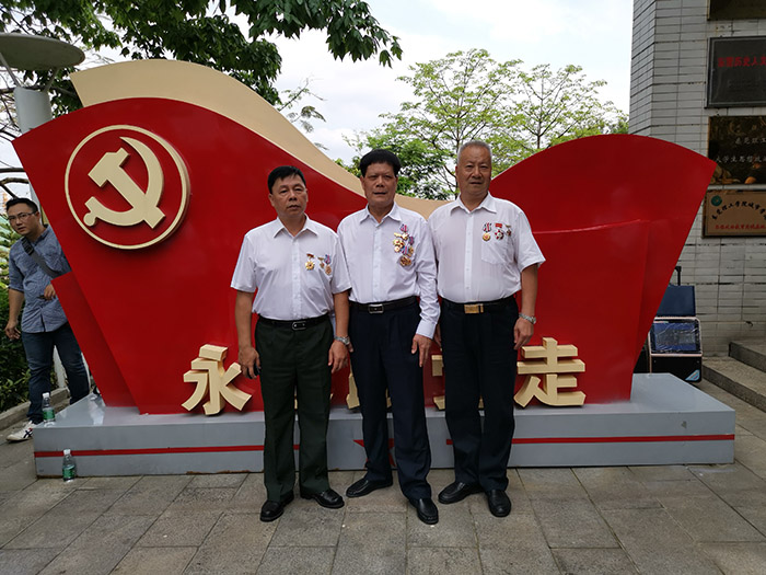 4月23日下午,根据市委宣传部的指示精神,我会选派了东江纵队老战士黎洪、76年兵一等功臣叶镇和、77年兵一等功臣汤超荣、78年兵功臣伍国祥等四位老战士、老兵参加东莞广播电视台承办的《国歌》快闪拍摄工作,交出了完美的答卷。