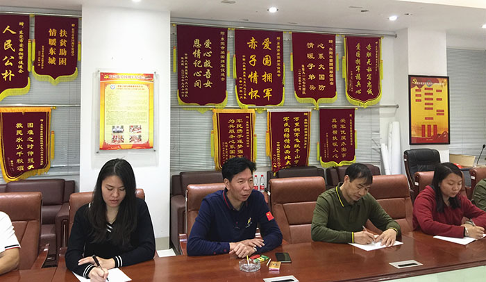 在部署4月份的工作时指出,我会的会务工作人员要始终以习近平新时代中国特色社会主义思想为指引,刻苦钻研新时期服务我市退役军人的创新工作,要奋发有为、脚踏实地、从细致、细微的工作做起,让退役军人深感党、政府和人民的温暖。当前,要着重配合做好各级政府为退役军人挂光荣牌匾的事、挂光荣牌的事、要好事做细、做好,真正让我们的老兵脸上有光,营造全社会崇军尚武的大氛围、强军梦、中国梦就指日可待。
