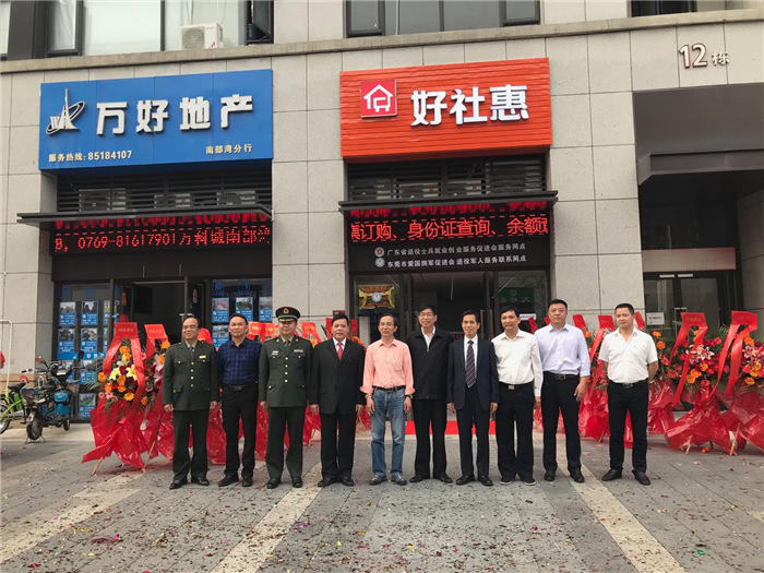 经过近半年的详细市场调研工作,东莞市爱国拥军促进会与广东省退役士兵就业创业服务促进会、深圳军临天香实业集团达成合作协议,正式启动东莞市退役军人就业创业服务平台项目一一《好社惠•便利店、便利亭》,并将东莞作为该项目的全国试点城市,让《好社惠•便利店、便利亭》成为我会服务老兵工作的新亮点而迈向新征程。