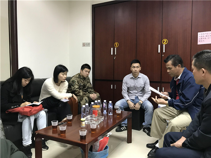 此次《中国国防报》派出两位记者到我会做专题采访,源于记者杨明月在浏览我会官网时,发现我会在服务在伍、关爱退伍、关怀军烈属、支持退役军人参与社会治理创新等工作中的做法,得到了军报相关领导的关注,他们就通过东莞军分区了解情况,才有了这次为期四天的采访行程。东莞军分区钟友国、李庆文、吴新征等首长对此次采访工作也非常重视,指派了政治工作处主任吴新征带队,并配合两位记者的工作。