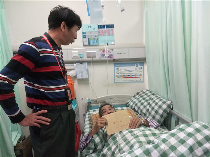 11月20日,我会工作人员,从井冈山学习回来后,便投入到为老兵服务的工作中去。2017年11月21日,我会工作人员分别探访慰问了老兵胡球仔和赖李何。胡球仔,石碣镇人,1976年入伍,参加过对越自卫还击战,近日,因重病入住市人民医院,本月20日接到老兵反映胡球仔情况后,在21日上午,我会马上派出工作人员到医院探望。赖李何,桥头镇人,1977 年入伍,参加过对越自卫还击战,近日,因腿部疾病,入住桥头人民医院,11月21日下午,我会工作人员连同桥头社会事务局的领导来到赖李何的病床前,并送上慰问金。我会温暖贴心的行动,让老兵们感动不已。