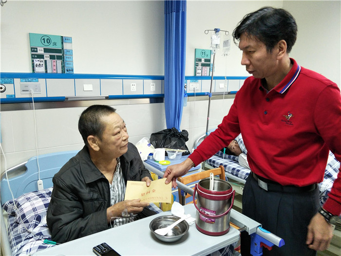 上午12时,工作人员马不停蹄又来到谢岗镇人民医院,谢岗社会事务局副局长罗泉深、何金池以及复退军人服务站的专职办事员、社区主任等10多人,在赵惠洪的病床前嘘寒问暖,并详细了解病情进展,莞籍七六老兵服务工作组常务副组长黄锦成和他的战友也闻信赶来。