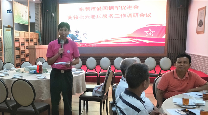 莞藉七六老兵服务工作组各镇街联络人陈志明、李志刚等35人全部到会,黄容开、吴育新等“76”知名老兵出席会议。