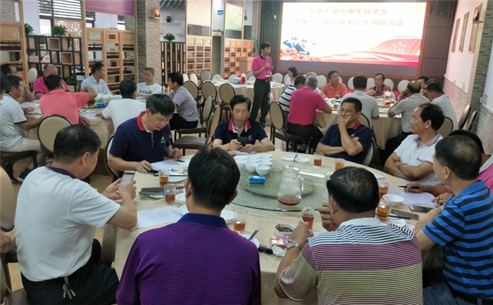 会议由卢普润秘书长主持,卢普润首先就调研会议主题向老兵们作了详细的解读,然后引导老兵围绕“如何对复退军人开展精神鼓励,如何对复退军人子女教育进行优待”的议题,开展了热烈的讨论。在讨论中,有老兵提出了三个建议:一是市民政局每年春节发给重点优抚对象的春联,也要发给原在职、但现在已经退休的参战老兵,因为,这副春联贴在家里,是对参战老兵的一种政治待遇,更是参战老兵教育下一代的最好教材;二是希望给在职退休的参战老兵发给一个像优抚证一样的证件,同样,这也是国家对老兵保卫祖国流血牺牲的最高精神鼓励;三是如何对复退军人子女教育进行优待方面,希望东莞市爱国拥军促进会多组织老兵子女开展一些正能量的公益活动,让复退军人的子女学习父辈的光荣传统,为东莞的爱国拥军事业增添新的力量。