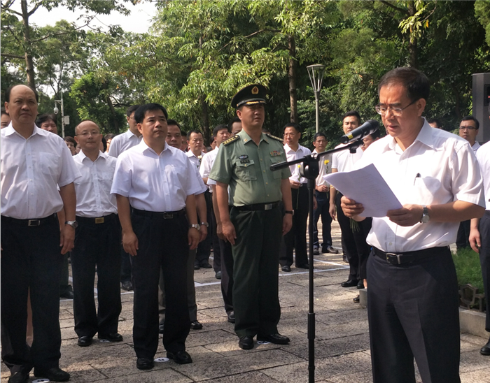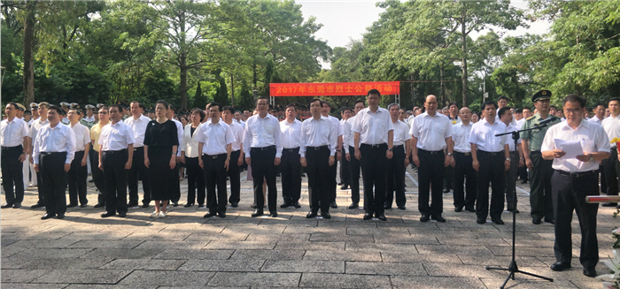 9月30日,东莞市委、市政府在人民公园革命烈士纪念碑广场举行烈士公祭活动。市委、市政府、市人大、市政协、军分区以及驻莞的中央和省的主要部门领导、社会各界代表、参战老兵代表等750多人出席纪念活动,深切缅怀纪念为民族独立、人民解放、国家富强、人民幸福而英勇牺牲的革命烈士。