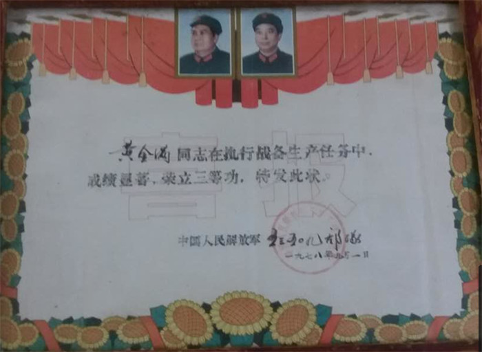 黄金满1976年应征入伍成为一名中国人民解放军军人,服役期间参加过对越自卫还击战,并立了战功, 1981年退伍,他在退伍后回到家乡福禄沙村桂轩洲桂村,一直默默无闻地从事务农工作,从没向组织方面提过任何关于工作、待遇补助等要求。正是这一份枪林弹雨、浴血奋战的经历,让他对国家的富强,民族的安定比别人有了更深层次的认识,有一套自己的人生观、价值观,正是在部队的峥嵘岁月,炼就了他艰苦奋斗,自强不息,敢于与任何艰难困苦作斗争的军人本色,他退伍不褪色,积极投身于为人民服务的事业中去,在人民群众的眼中,他是好“干部”,在打过仗的老兵群体当中,他是一位优秀的退伍老兵。