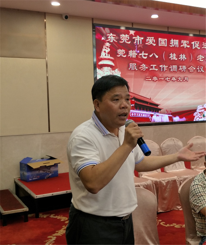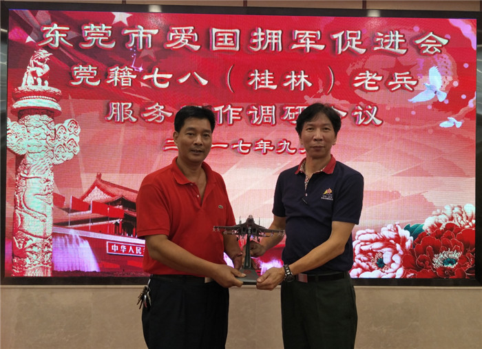 如何对复退军人开展精神鼓励,如何对复退军人子女教育进行优待是市民政局给我会今年下半年布置的重要课题之一,也是我会今年主题工作之一。调研工作首先从莞藉七八(桂林)老兵群体中展开,是因为这个群体的“单位人”带动引领“社会人”的工作方面取得了一定的工作成效,20多年来,他们以“为战友解难,为政府分忧,为国家奉献,为军队增光”为宗旨,开展了一系列的互助关爱工作,在我会开展的《手拉手帮战友》项目实施过程中,为我市不同年份的入伍老兵树立了榜样。