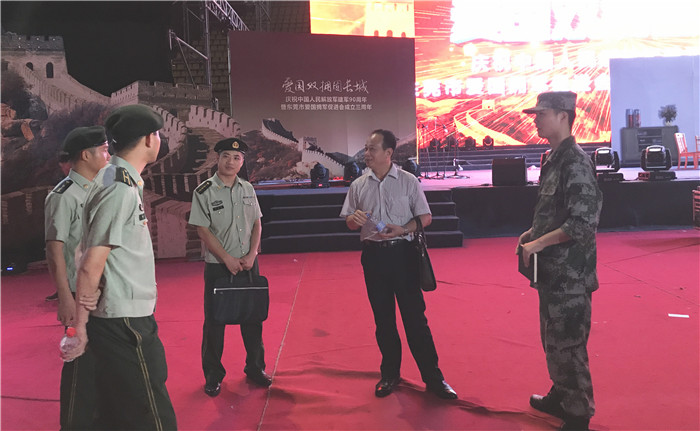 为保证晚会的顺利进行,王国雄对参加会议的各方联络人提出了几点要求:第一,勘察好现场。部队方阵的位置、老兵方阵的位置在哪里,要把座位记好,不要搞错。第二,进出的通道要搞清楚。根据座位安排,各自负责的人员怎么有序地进场,有序地出场,要做到心中有数。第三,就是清楚当天晚上的停车位,这样才能保证人员迅速到位和离场。
