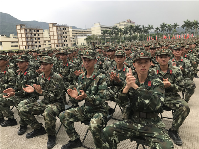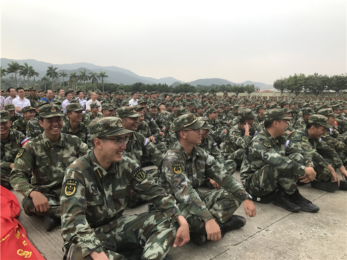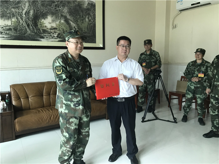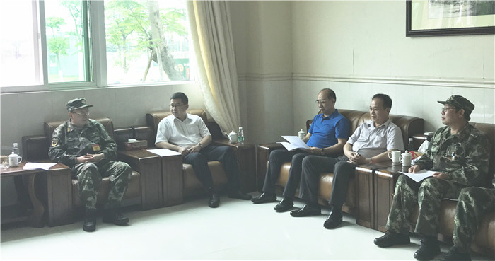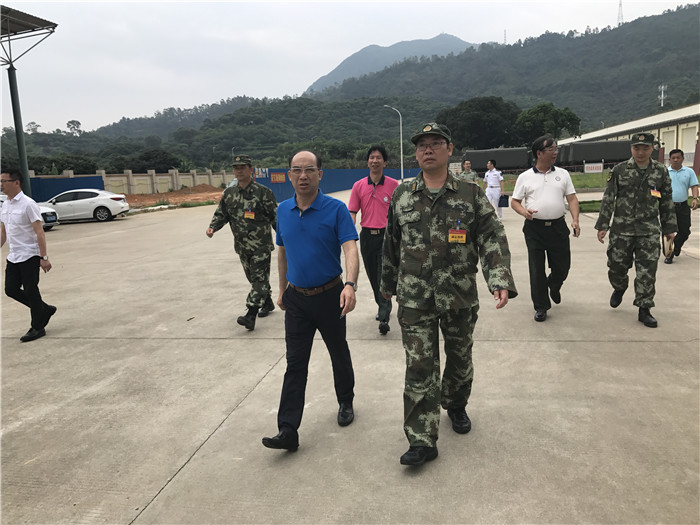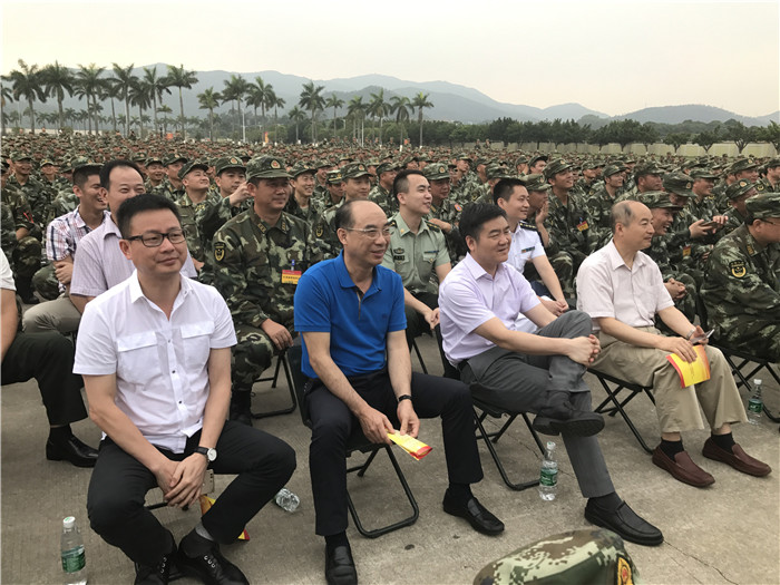 25日下午,省双拥办专职副主任刘卫党、市政府副秘书长、市双拥办主任张春扬率团慰问武警广州指挥学院在大岭山进行野营综合演练的1300多官兵。