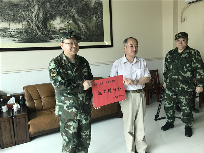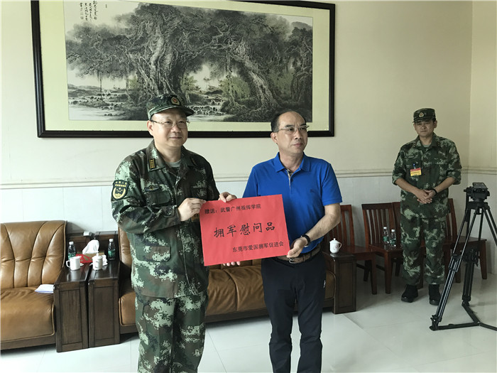 慰问团由省双拥办、市双拥办、大岭山镇政府和我会组成。慰问团一行首先举行座谈会,武警广州指挥学院政委邹庆华介绍了今次野营综合演练的相关情况,随后,省双拥办、市双拥办向武警广州指挥学院赠送了慰问金,大岭山镇政府和我会向武警广州指挥学院赠送了慰问品。