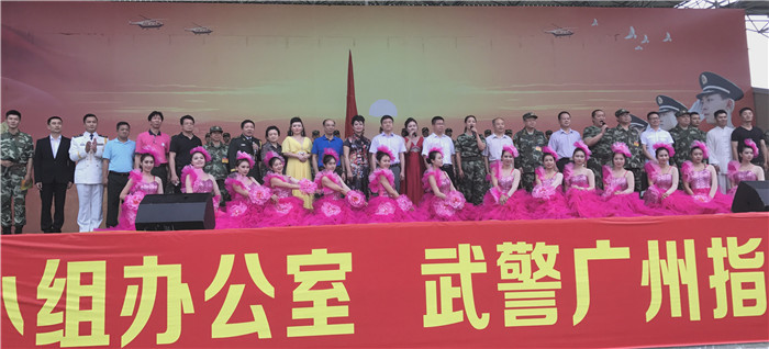 座谈会结束后,慰问团带队领导刘卫党、张春扬,以及市民政局局长莫淦泉、大岭山镇党委委员黄兆良、蔡培光、我会常务副会长梁景棠、我会秘书长卢普润等一行,来到武警广东省总队东莞训练基地的操场上,与武警官兵一同观看了“同呼吸共命运 军民共建心连心”军民联欢文艺演出。