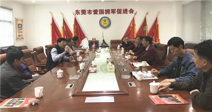 这15名老兵是到东莞参加老兵苏礼杨女儿的婚礼的,老战友见面,聊天的话题离不开老兵的工作生活情况,当他们听到东莞老兵朱灿明介绍东莞老兵积极参加民间爱国拥军等各种正能量活动,且每次活动都有东莞市爱国拥军促进组织时,老兵们马上要求要到本会来参观访问。