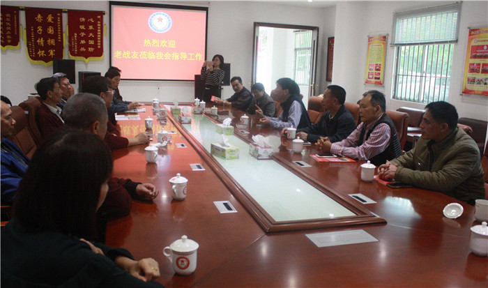 在会议室,老兵们围桌而坐,卢普润秘书长对老兵们的到来表示热烈欢迎,他请老兵们观看了本会的工作汇报片和七八老兵活动资料片。之后,卢普润向老兵们简单介绍了东莞市爱国拥军促进会的工作职能和近期所开展的工作。陈海良就老兵们所关心的一些优抚政策向老兵们作了解读。