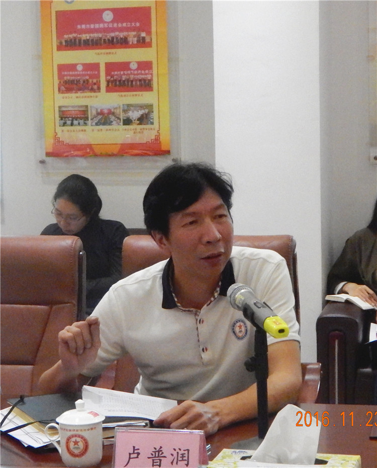 市民政局副局长王国雄在座谈会上作了补充发言,王国雄说,东莞市爱国拥军促进会能取得工作成效,就是有一班弘扬正气、充满爱国拥军正能量的会长和理事;有一班热心爱国拥军事业的企业家和荣誉会长、名誉会长;一个讲奉献、能做事、会做事的秘书处,正是这样一个为老兵贴心服务的社会组织,所以取得了显著的成效,集中表现在三个品牌工作做得好,一是服务在伍,二是关心退伍,三是关爱军烈属。特别是实施“支持复退军人参与社会治理创新”项目,激发了广大复退军人的爱国热情,收到了很好的效果。