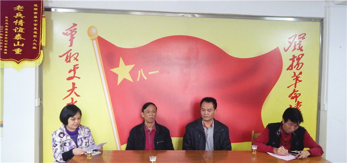 在调研学习过程中,郁南县民政局副局长卢文强、千官镇副镇长李丽红、郁南县千官镇复退军人之家负责人等分别向我们介绍了千官镇的复退军人工作情况,以及组建复退军人之家的运行情况。千官镇常住人口有49000多人,共有复退军人1042人,重点优抚对象240人。李丽红副镇长着重讲实了镇领导对成立复退军人服务之家的重视和支持,并介绍了复退军人服务之家的工作重点。复退军人服务之家,在全镇的19个自然村都设有联络员,他们不断地走访,了解复退军人的实质生活情况,发觉有特殊困难的复退军人,及时向镇领导反映,在经济欠发达的情况下,实行多方位多渠道地对有特殊困难的复退军人进行扶持,让复退军人从精神上得到慰藉。解决了部分特殊困难的复退军人,稳定了一大片人心。