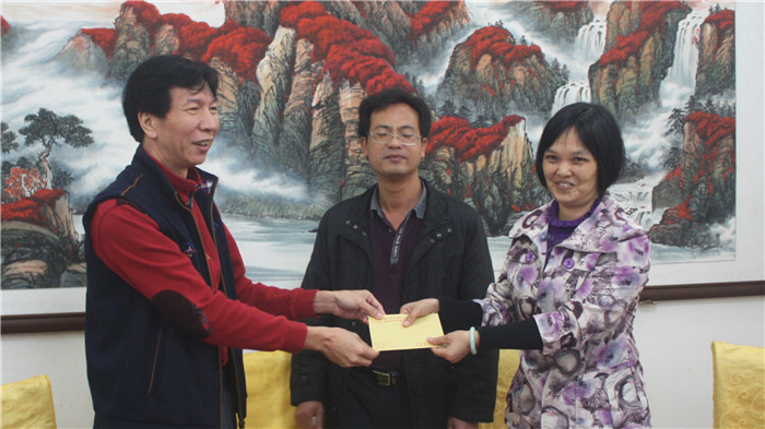 在与千官镇的领导同复退军人服务之家负责人的互相交流经验中,得到了千官镇各领导的大力支持,为了感谢他们的盛情接待,为了支持他们复退军人的服务工作,卢普润秘书长以东莞爱国拥军促进会的名誉,赠送了慰问金,让他们转交给复退军人服务之家。