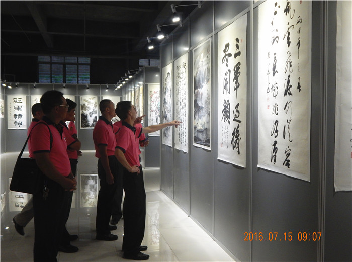 东莞市爱国拥军促进会在常务副会长梁景棠的指示下,秘书处组织了40多名会员参加观摩将军们的画展,同时也作为会员的一次学习活动。