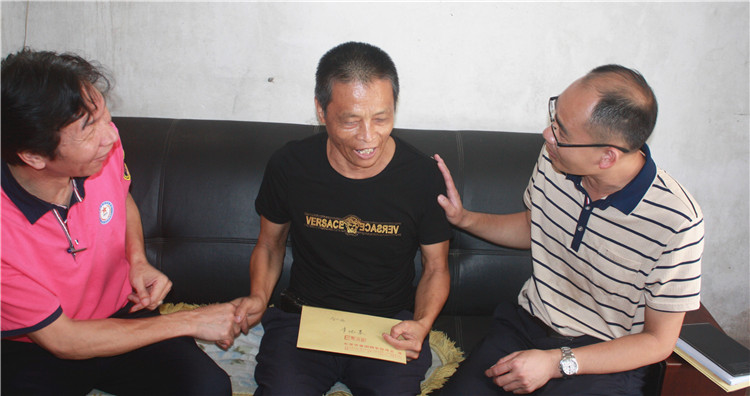东莞市爱国拥军促进会、市复退军人服务办公室的工作人员,在八一来临之际,在促进会副秘书长卢普润的带领下,于7月27日早上来到了企石镇,连同企石镇社会事务办主任姚振标、副主任姚炳权,以及企石复退军人服务站的工作人员一道,前往到企石镇铁岗村,对在1979年对越自卫还击作战中,荣获一等功的护国功臣麦伦基,进行八一慰问。