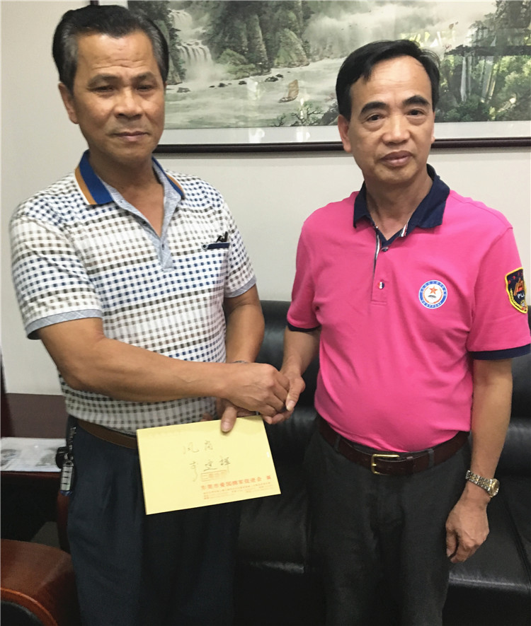 7月26、27日,东莞市爱国拥军促进会依照第三次会长会议精神,组成慰问团,兵分三路深入长安、塘厦、企石等24个镇(街)对荣立二等战功以上的许春树、赵理安、萧包佛等41位在乡人员开展慰问活动,同时,给荣立二等战功的以上的在职人员和荣立三等战功的李满堂、邹克文、李志刚等300多位老兵寄送贺卡,把党、政府和人民的关怀送到功臣们的心坎上,让全社会形成一个赞颂英雄的氛围。