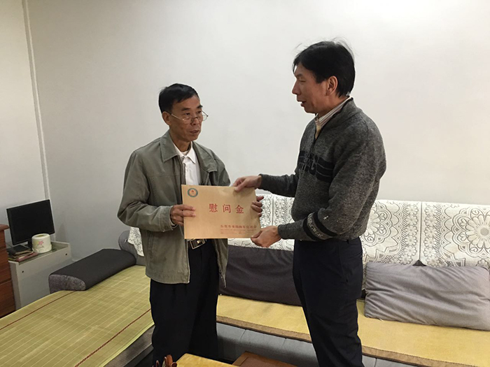 76年的陈远深和唐满球两人都是在战场上火线入党,荣立二等功。2010年国庆节,他们俩人受国家邀请到北京参加国庆庆祝活动,在人民大会堂受到胡锦涛主席的接见。陈远深身上有多处负伤,是二级伤残退役军人,身上还留有弹片,伤痛时常发作,每年自付医药费达4万元,他一直在常平财政局工作,现已退休。与之前工作时看病公费医疗相比,现在社保看病的一些政策他不是很了解,陈海良给他作了比较详细的解释工作,并邀请他来爱促会,就一些社保政策再作学习了解。