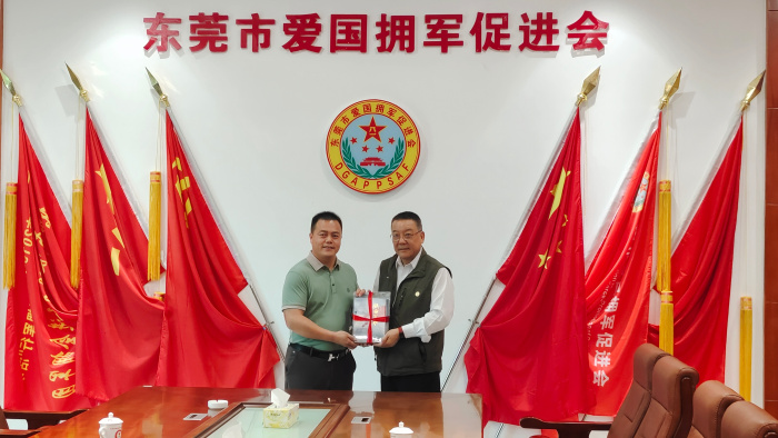 东莞市爱国拥军促进会会长梁应昌、副会长兼秘书长卢普润、副秘书长兼办公室主任王广明等参与接待座谈。