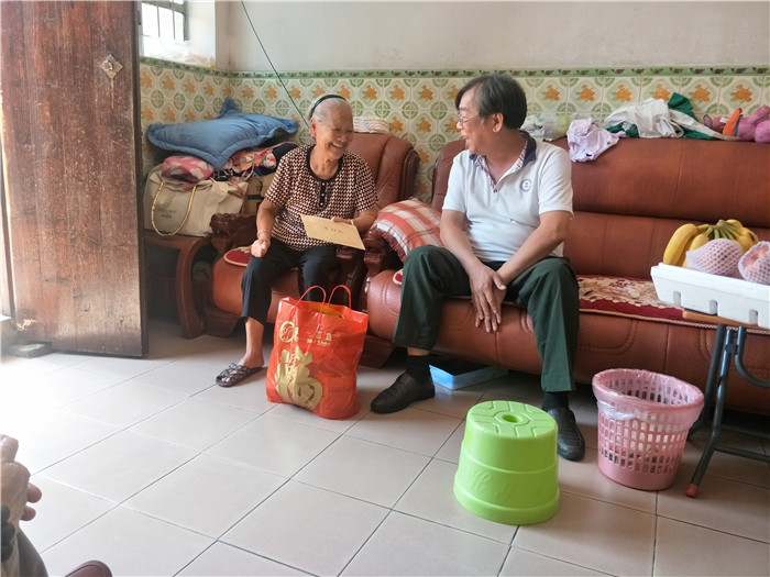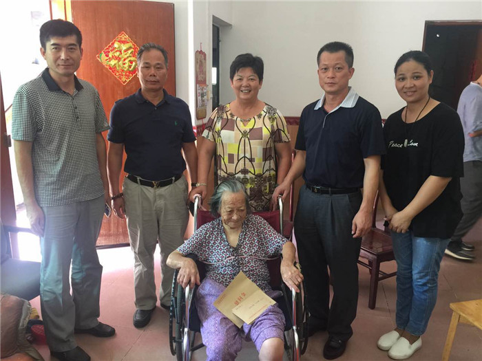第六慰问小组在叶小红副会长的带领下分别走访了塘厦、凤岗、清溪三镇。塘厦镇林永祥烈士母亲尹英妹今年88岁了,当慰问组到来时,一开始尹婆婆情绪有些低落,叶小红见状就坐下来,热情与她聊家常,渐渐地,尹婆婆心情也开朗了起来,便说起了自己家庭的情况,告诉大家,她现在有了8个孙子,4个曾孙,最大的曾孙都15岁了,看到老人家开心了,叶小红也开心地祝愿她身体健康,子孙满堂,当慰问组成员要离开时,尹婆婆更是依依不舍地与大家道别。