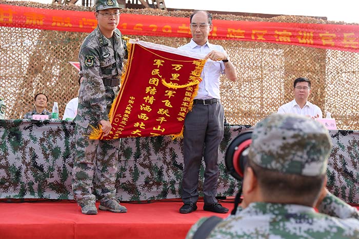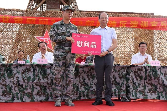 31629部队刘文彦政委对东莞各级党委政府和社会组织万里拥军的高尚情怀表示感谢。他表示,部队官兵将聚焦强军目标,按照实战要求,扎营戈壁练精兵,深入大漠磨利剑,锤炼能打胜仗本领,高标准地完成跨区演训任务,以优异成绩向家乡人民报喜。