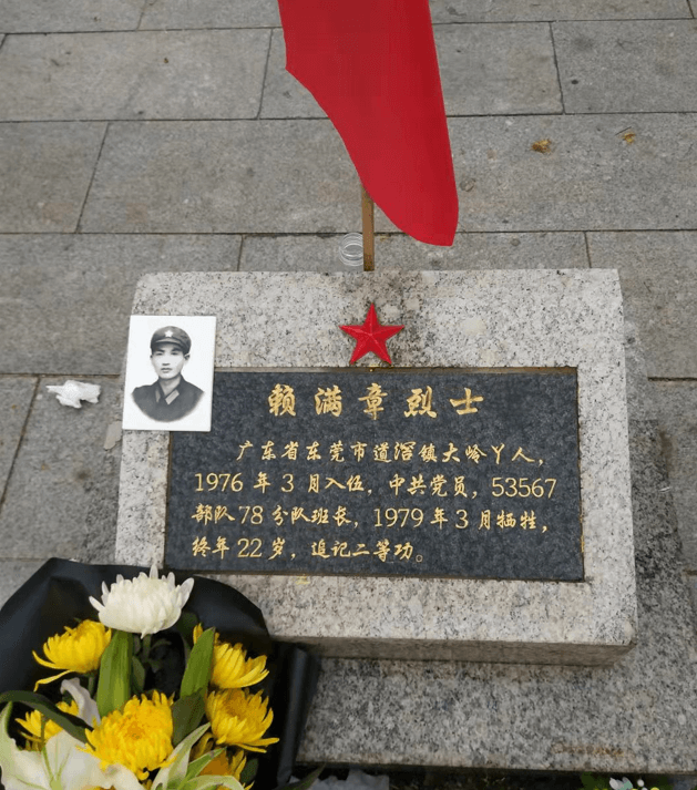赖满章烈士,东莞市道滘镇人,1976年3月入伍到55军164师492团4连。曾任班长,共产党员,1979年2月28日牺牲,终年22岁,追记二等功。