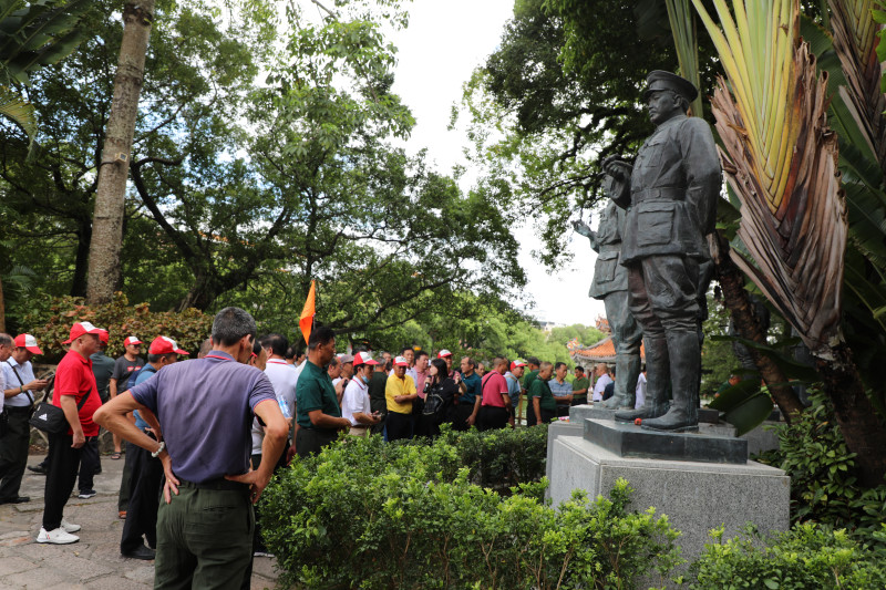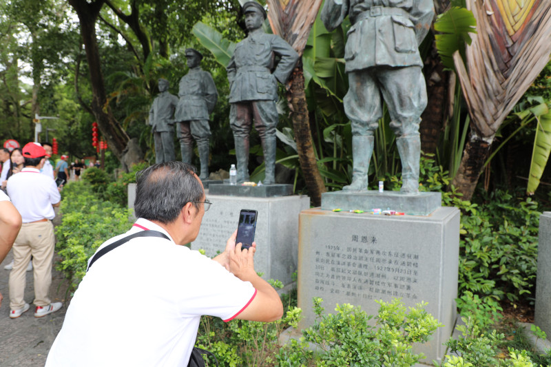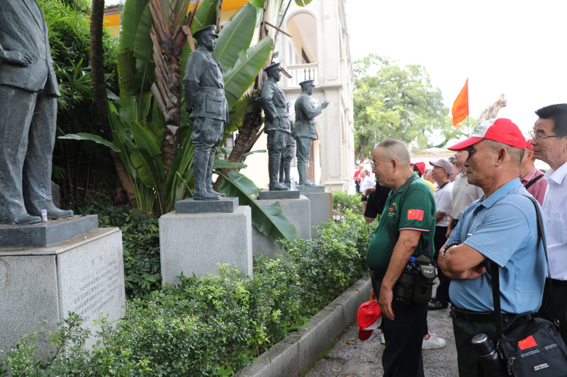 活动首站,参观学习团来到了潮州西湖畔的涵碧楼——这座被誉为“潮州革命摇篮”的历史建筑。这里曾是“八一”南昌起义军进驻潮州后建立的红色政权所在地。老兵们怀着无比敬仰的心情,仔细观看馆外陈列雕像、石刻,聆听讲解员讲述周恩来、贺龙、叶挺、刘伯承等革命先辈在潮州的革命事迹,深刻感悟革命斗争的艰苦卓绝和革命先烈的坚定信念。