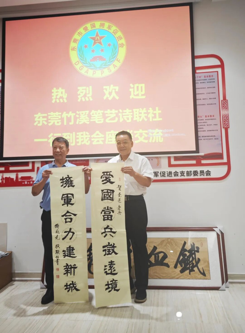 金秋送爽,文墨飘香。9月22日下午,东莞竹溪笔艺诗联社赴我会开展“双拥共建·文墨传情”为主题的文化拥军采风活动,旨在通过文化交流赋能双拥工作,共同探索文化拥军的新路径。