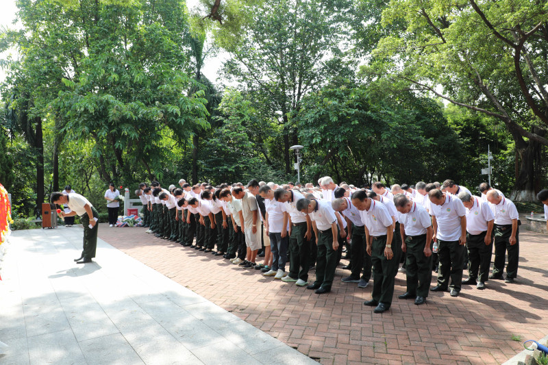 苍松翠柏掩映下的衣冠冢格外庄严肃穆。上午10时,曾旭棠常务副会长整理队列后,面向衣冠冢深深鞠躬,随后宣布公祭仪式正式开始。现场奏唱起《中华人民共和国国歌》,激昂的旋律在山间回荡……,全体人员垂首肃立,向革命烈士默哀,现场一片寂静,唯有对先烈无尽的哀思在空气中弥漫。