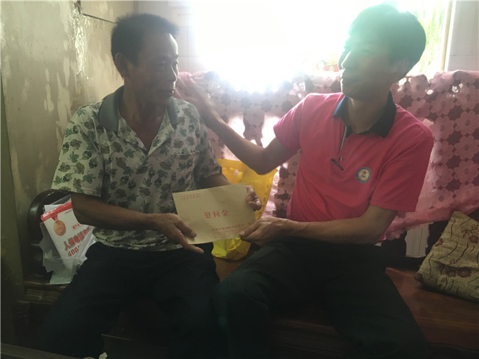 6月22日上午,我会秘书处卢普润、陈海良、曾嘉琪以及正在忙于筹备庆祝建军90周年暨我会成立三周年晚会的总顾问谭满矶等一行五人,来到茶山镇,探访慰问参战退伍老兵刘惠波。