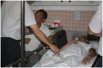 2015年5月12日,东莞市爱国拥军促进会秘书处副秘书长卢普润、退役军人服务部部长陈海良前往石排镇人民医院探望退役老兵叶金旺,给他送去诚挚的问候和慰问。 叶金旺,东莞...