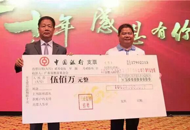 2015年6月23日,广东三正集团迎来了20周年华诞,在成立庆典活动中,广东三正集团向广东省教育基金会捐赠人民币500万元。广东省教育基金会许怀升副秘书长代表广东省教...