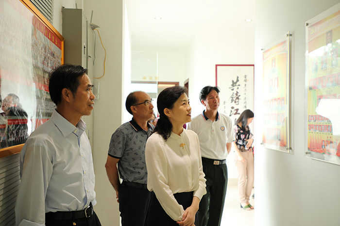 黎副市长到达我会后,随即视察我会的办公设施,在办公区的过道上,莫会长简易介绍我会各办公室的情况。