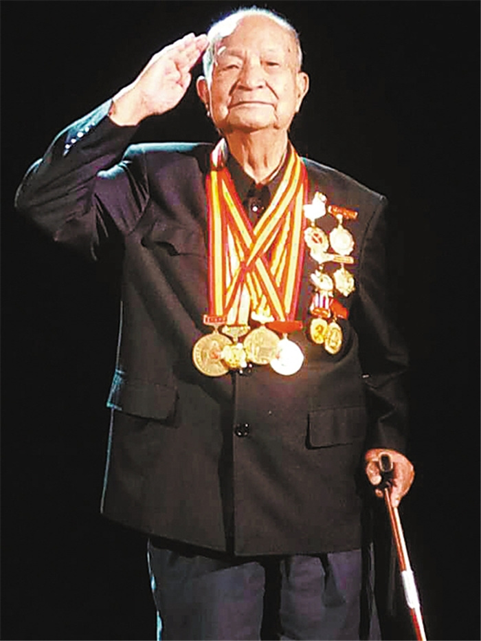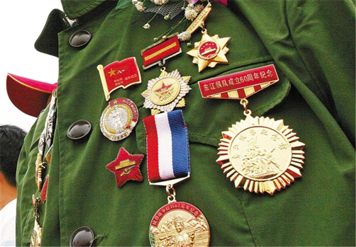 老战士胸前的一枚枚奖章犹如一道丰碑