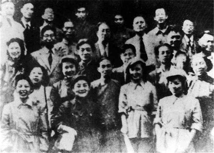 第一批到达东江游击队区的文化人士合影