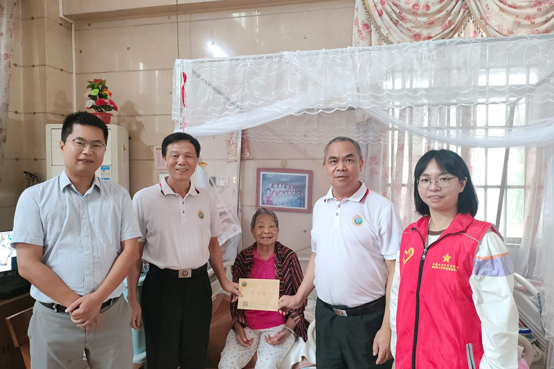 在虎门探望万建芬烈士母亲时,老人家年纪大了,腿脚已经不利索了,但还是坐在轮椅上等待慰问人员的到来,万烈士的弟弟代替老人家说“很感谢爱促会每年如期的到来,老人家虽然不怎么会讲话,但是爱促会对她好,她心里面很清楚”。