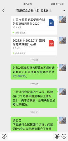 2021年8月25日下午,东莞市爱国拥军促进会第八次会员大会(微信会议)圆满完成各项议程,形成决议案,第八次会员大会胜利闭幕。以微信会议形式召开会员大会,是我会根据疫情防控要求,经第二届理事会第六次会议的决定。