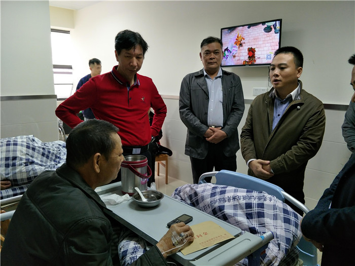上午12时,工作人员马不停蹄又来到谢岗镇人民医院,谢岗社会事务局副局长罗泉深、何金池以及复退军人服务站的专职办事员、社区主任等10多人,在赵惠洪的病床前嘘寒问暖,并详细了解病情进展,莞籍七六老兵服务工作组常务副组长黄锦成和他的战友也闻信赶来。